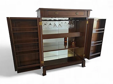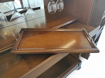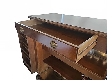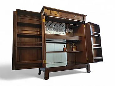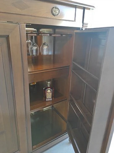 Mobile bar in noce e vetro con led interni, anni '80