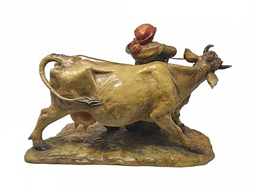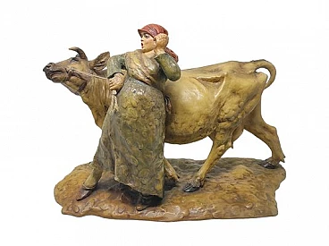 Guido Cacciapuoti, Contadina con vacca, statuetta in ceramica