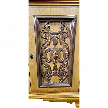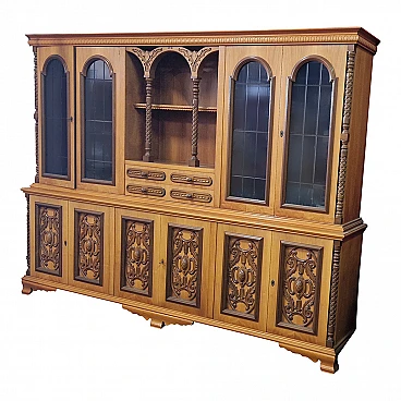 Libreria doppio corpo in noce biondo con vetrina, anni '70