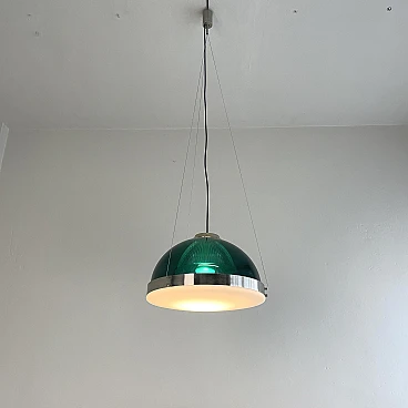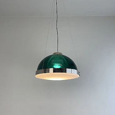 Lampada a sospensione in metacrilato verde e metallo cromato, anni '60