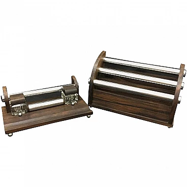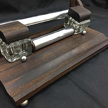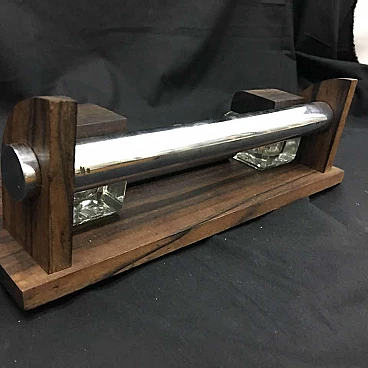 Set da scrivania francese in legno e acciaio Art Déco, anni '30