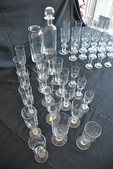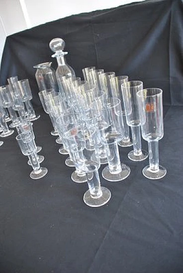 42 Bicchieri, brocca e bottiglia in vetro di C. Moretti, 1986