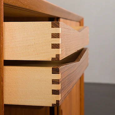 Il nostro team ha controllato a fondo il pensile. Tutte le parti si incastrano e gli interni sono puliti, con ante e cassetti scorrevoli senza problemi. I numeri di serie del produttore e le incisioni Made in Denmark sono conservati, a conferma dell'origine. Il pensile è in condizioni vintage fantastiche con lievi segni d'uso, il legno è stato rivestito con ulteriori strati di olio danese.