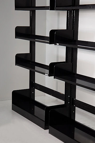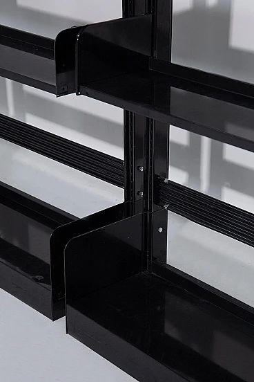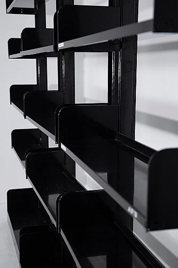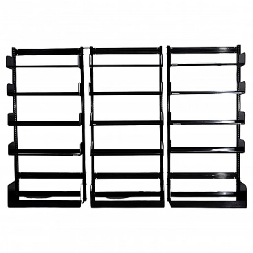 Il trio di librerie Congresso nere di Lips Vago degli anni '60 emana un'aura di raffinatezza senza tempo e di eleganza funzionale. Queste librerie, realizzate in elegante metallo verniciato nero, sono simboli iconici dell'ingegnosità e della praticità del design di un'epoca che abbracciava sia lo stile che la sostanza. Incarnazione di un linguaggio progettuale inconfondibile, la libreria Congress di Lips Vago vanta eccezionali qualità di durata, sicurezza, flessibilità e perfetta integrazione in qualsiasi ambiente, sia domestico che professionale. Il riconoscimento del Premio Smau 1968 per il design industriale ne sottolinea l'importanza nel campo del design d'eccellenza. In questo set offriamo la versione alta 300 cm. Le librerie possono anche essere assemblate insieme. Costruito in lamiera d'acciaio, lo scaffale "Congresso" è una testimonianza di robustezza e discrezione e offre un'aggiunta versatile a qualsiasi spazio grazie alla sua capacità di essere utilizzato su entrambi i lati. Le piastre metalliche alle estremità dello scaffale, posizionate verso l'alto, fungono non solo da stabilizzatori ma anche da fermalibri, assicurando forma e funzionalità. La creazione della libreria Congresso da parte di Lips Vago rappresenta una fusione armoniosa tra l'abilità italiana nella lavorazione dei metalli di Vago e l'esperienza olandese nell'ebanisteria di Lips. Insieme, hanno dato vita a un pezzo che trascende la mera utilità, diventando una dichiarazione di gusto raffinato e di qualità duratura. In un mondo in cui il design spesso sacrifica la praticità per l'estetica o viceversa, le librerie Congresso testimoniano la possibilità di ottenere entrambe le cose senza soluzione di continuità. Evocano un senso di nostalgia per un'epoca in cui l'artigianato e la funzionalità erano tenuti in grande considerazione, suscitando ammirazione e apprezzamento per il loro fascino senza tempo.