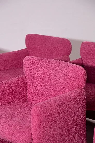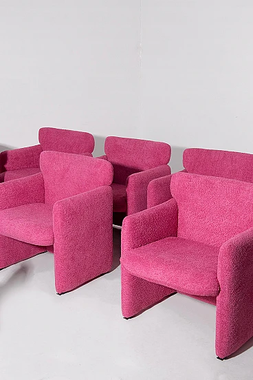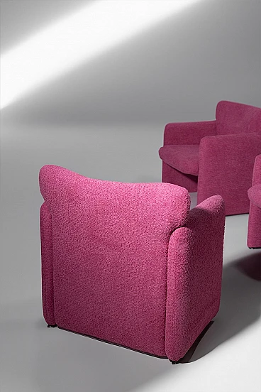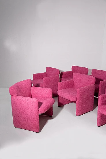 Provate il perfetto connubio tra design classico e comfort moderno con questo set di otto poltrone Eugenio Gerli per Tecno, mod S148. Ispirate all'iconico design S142, queste poltrone sono state magistralmente realizzate in legno massiccio e recentemente rivestite in tessuto bouclé di alta qualità, per offrire resistenza e lusso. La texture vibrante del bouclé aggiunge un tocco di raffinatezza e calore a qualsiasi spazio, rendendo queste poltrone non solo funzionali ma anche altamente decorative. Le poltrone sono dotate di coprisedile in plastica con il logo Tecno, che ne garantisce l'integrità e aggiunge un tocco di praticità al loro design accurato. Ogni sedia reca l'etichetta originale Tecno, che ne certifica l'autenticità e il legame con il patrimonio del design italiano. Queste sedie sono ideali per chiunque voglia arricchire il proprio spazio abitativo con pezzi che offrono una storia unica e uno stile ineguagliabile. Sia che vengano collocate in un salotto moderno o in un ufficio elegante, queste poltrone promettono di elevare i vostri interni con la loro storia avvincente e il loro fascino senza tempo. Le loro condizioni sono eccellenti e mostrano solo una leggera usura, coerente con l'età e l'uso, che aggiunge carattere senza togliere nulla alla loro bellezza o funzionalità. La struttura robusta e le linee eleganti di queste poltrone assicurano che saranno apprezzate e ammirate per gli anni a venire.