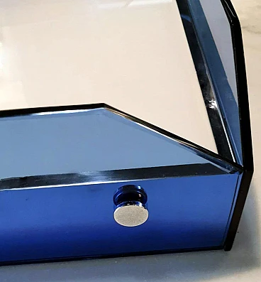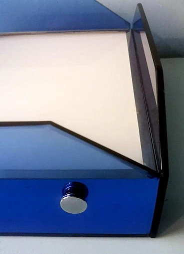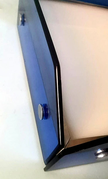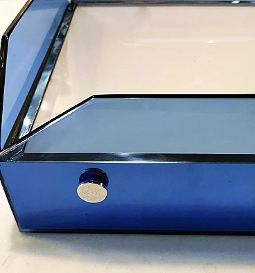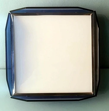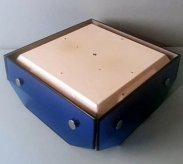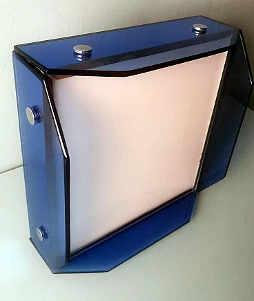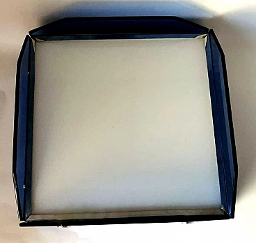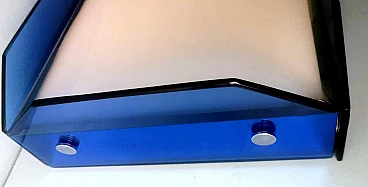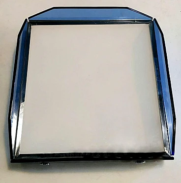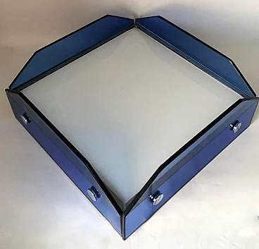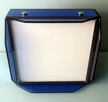 Plafoniera in vetro blu e metallo in stile Fontana Arte, anni '70
