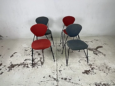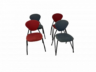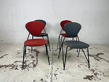 4 Sedie in metallo, legno e tessuto di ISA Bergamo, anni '60
