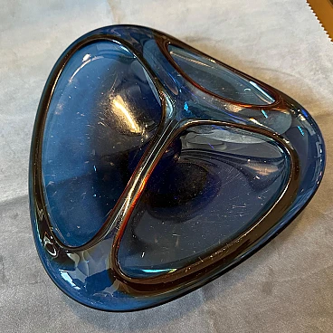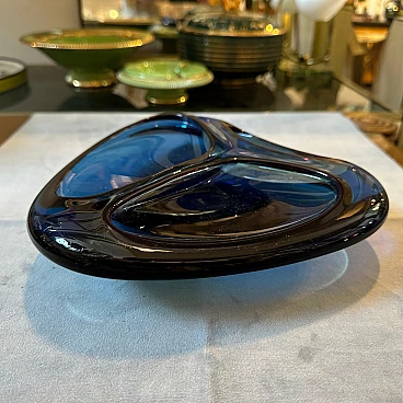 Posacenere triangolare in vetro di Murano blu e marrone, anni '80