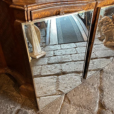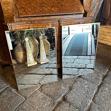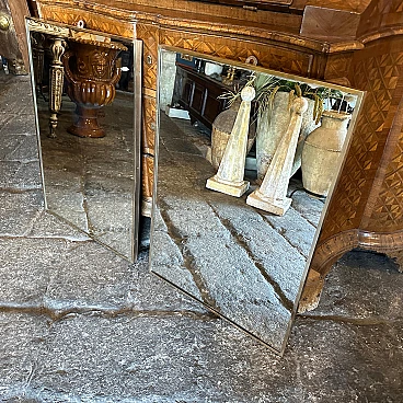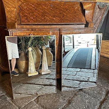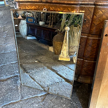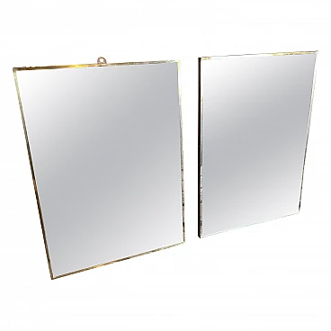 Una coppia di specchi da parete rettangolari in ottone massiccio, della metà del secolo scorso, progettati e realizzati in Italia alla maniera di Gio Ponti, che utilizzava questo tipo di specchio nelle più belle case milanesi degli anni '50. L'ottone vanta una bella patina originale, mentre il vetro rimane originale. Questa forma rettangolare dello specchio era un segno distintivo degli specchi disegnati da Gio Ponti. Questi due specchi da parete sono splendidi pezzi di design vintage che incarnano l'essenza dell'estetica della metà del secolo scorso, mostrando il suo caratteristico mix di funzionalità, eleganza e influenze moderniste. Con la loro presenza audace e accattivante, diventano un punto focale in qualsiasi stanza. Le cornici degli specchi sono realizzate in ottone massiccio, un materiale molto diffuso nella metà del secolo scorso. La calda tonalità dorata dell'ottone completa le superfici riflettenti degli specchi, creando un effetto visivo armonioso. Le cornici in ottone sono eleganti e minimaliste, vantano linee pulite e una finitura liscia che mette in mostra la semplicità e la raffinatezza del design moderno di metà secolo. Gli specchi stessi sono di grandi dimensioni e consentono di riflettere e fungono da elementi funzionali e decorativi della stanza. Le loro superfici riflettenti, chiare e prive di orpelli, enfatizzano l'obiettivo degli specchi e migliorano l'illusione dello spazio e della luce nell'area circostante.