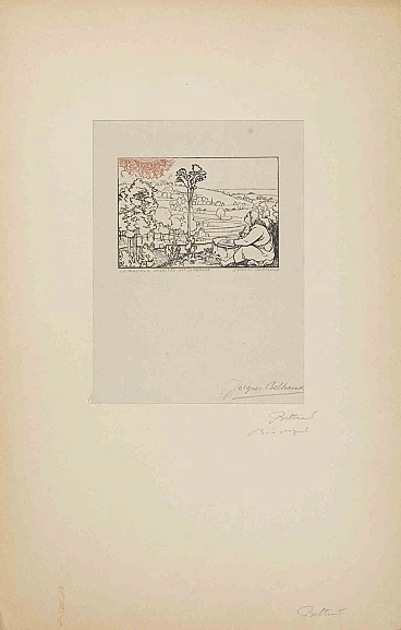 Paesaggio è una xilografia originale, realizzata da Jacques Bethand nel XX secolo.Buone condizioni.L'opera d'arte è rappresentata attraverso morbidi tratti di matita.