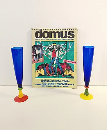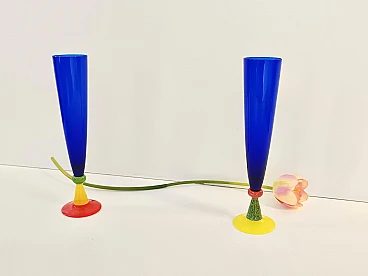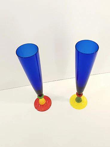 Coppia di flute in vetro di Murano blu di Bisazza & Rotella, 2000