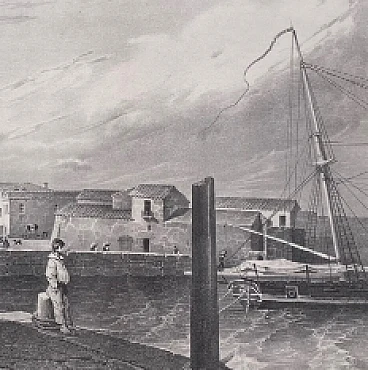 Veduta di Porto Torres (Sardegna), 1823. Litografia.