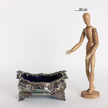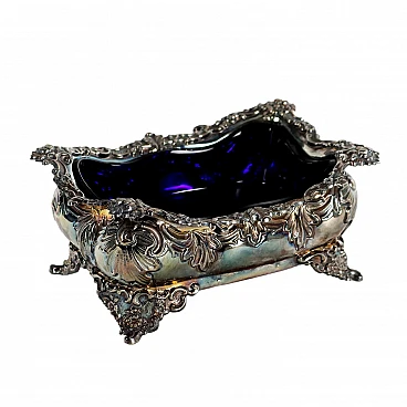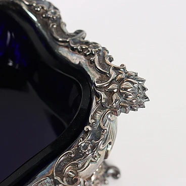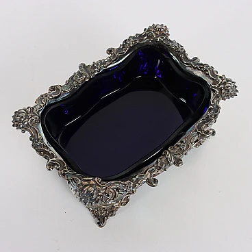 Centrotavola in argento 800 e vetro blu di De Giovanni