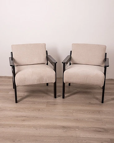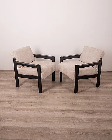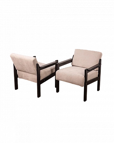 Coppia di Poltrone con struttura in legno e tessuto grigio, anni '80