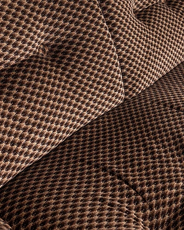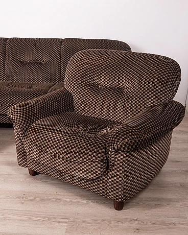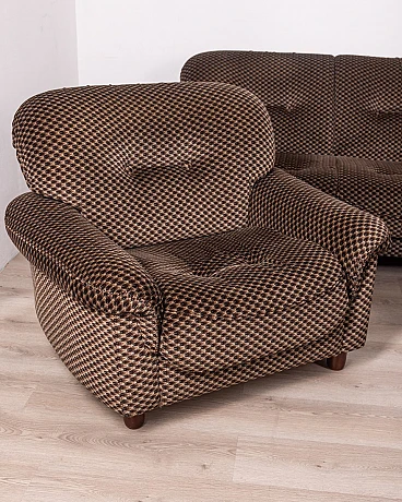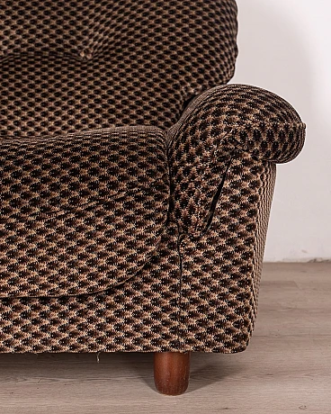Salotto imbottito in tessuto marrone con piedi in legno, anni '70