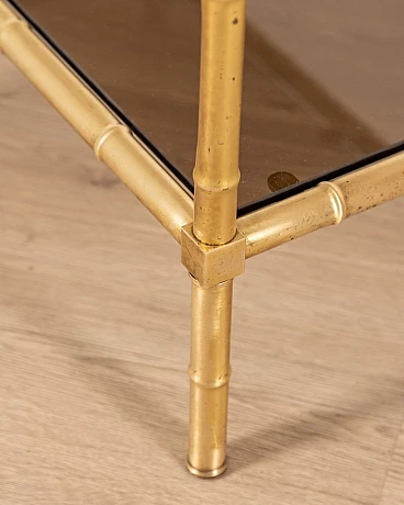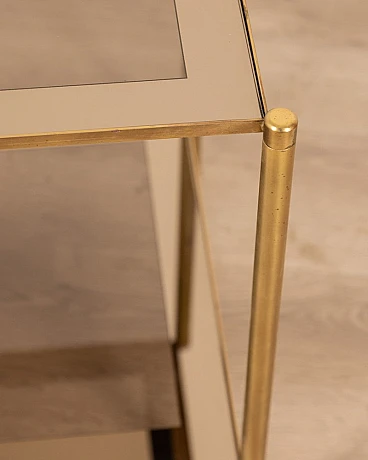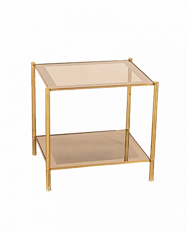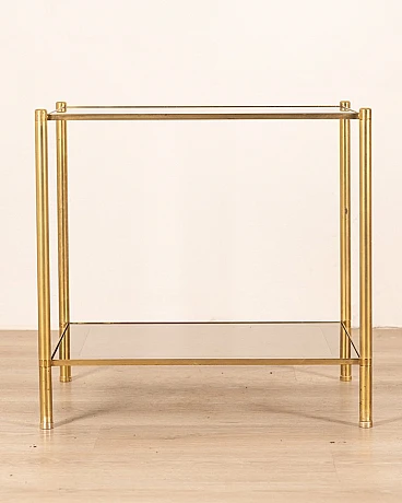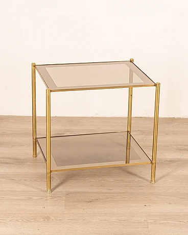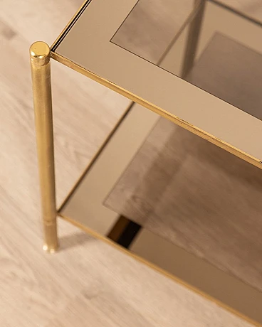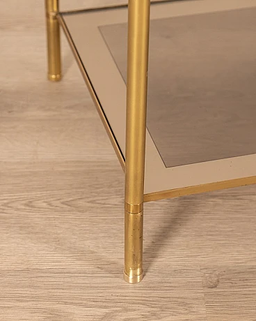 Tavolino da caffè a doppio piano in ottone e vetro fumé, anni '60