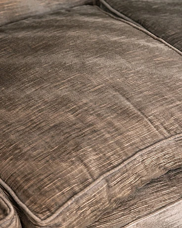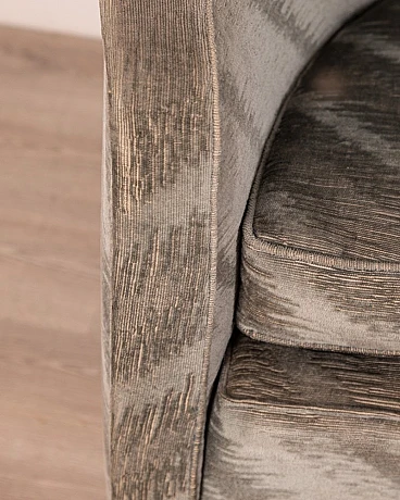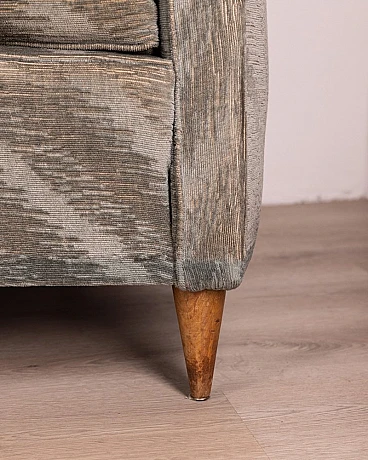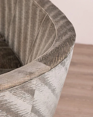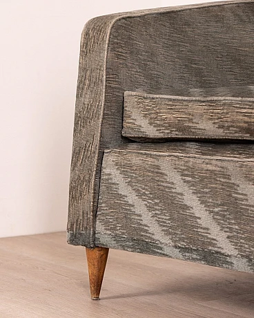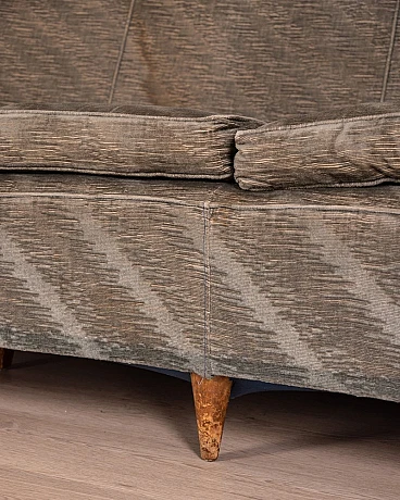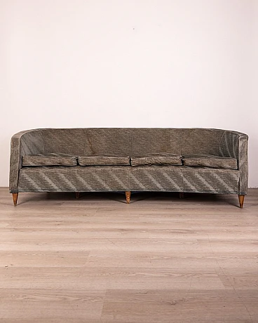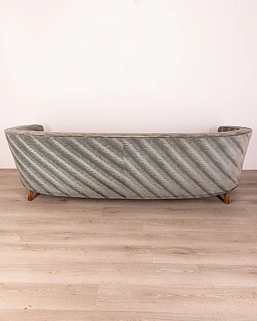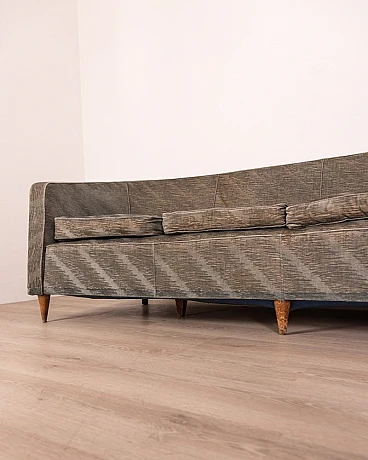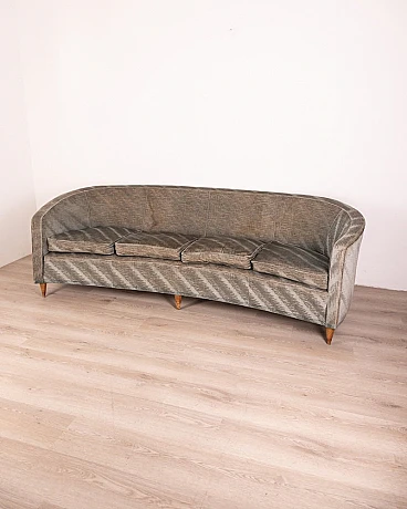 Divano curvo a 4 posti in velluto grigio e piedi in legno, anni '50