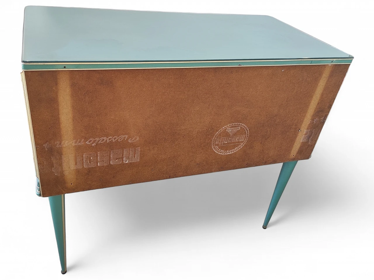 Credenza in vinile, alluminio e vetro di Umberto Mascagni, anni '50