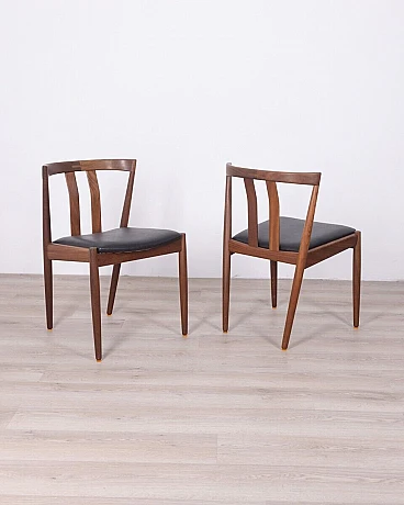 Coppia di Sedie danesi in teak con seduta in pelle nera, anni '60