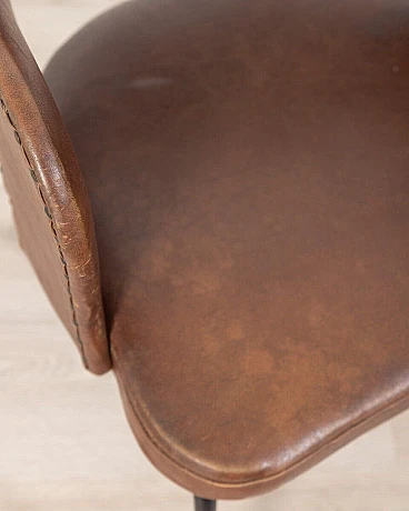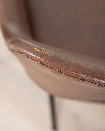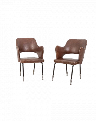 Coppia di Poltrone in pelle marrone e gambe in metallo, anni '60