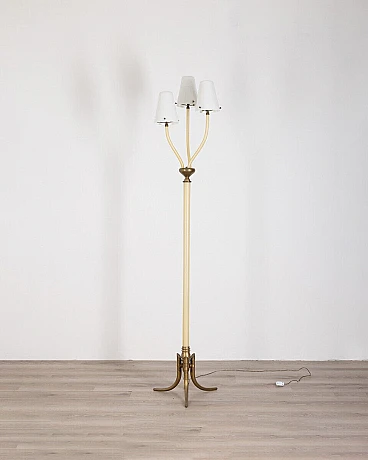 Lampada da terra a 3 luci in vetro di Murano e ottone dorato, anni '50