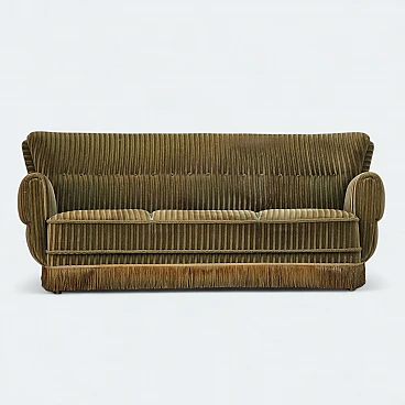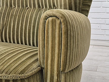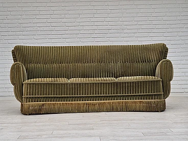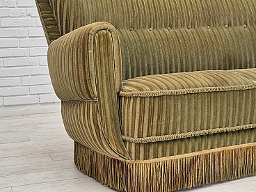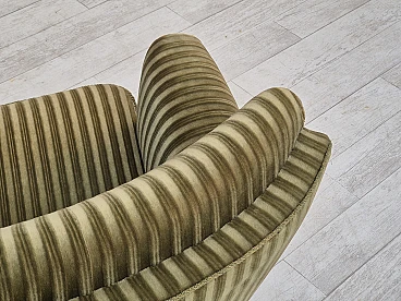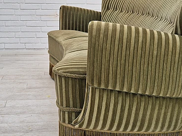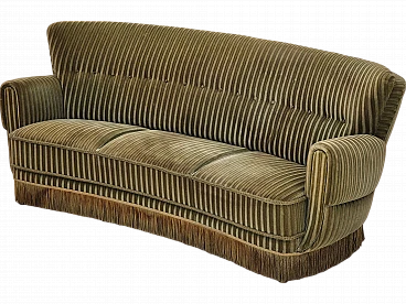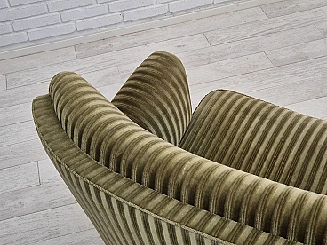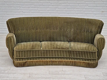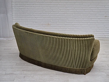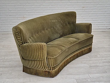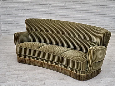 Divano danese curvo in velluto verde e faggio, anni '60