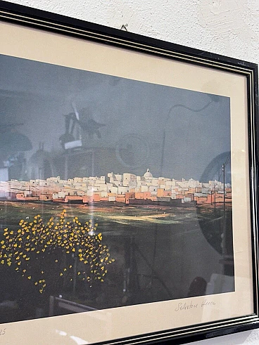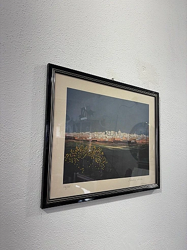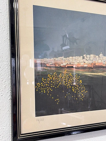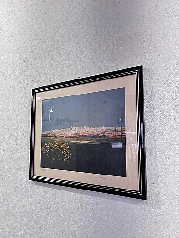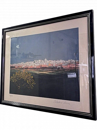 Salvatore Lecce, città, opera a tecnica mista su carta, anni '70
