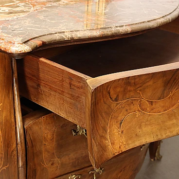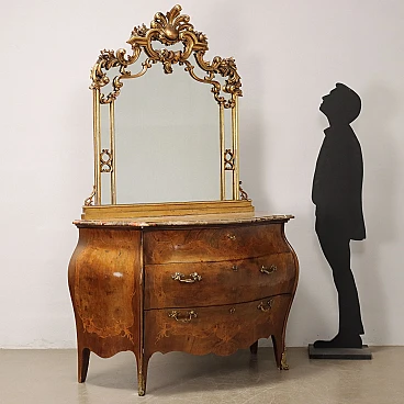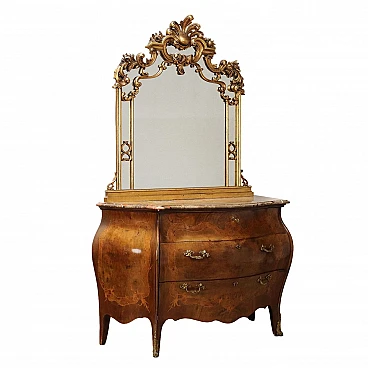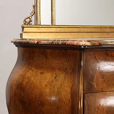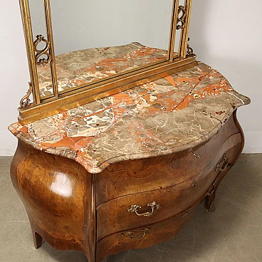 Comò con specchio in stile Barocchetto in noce e marmo breccia