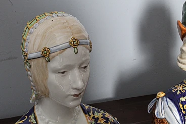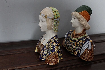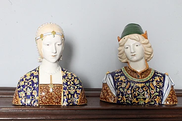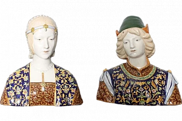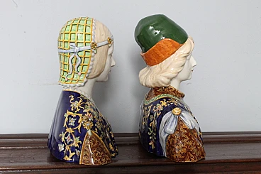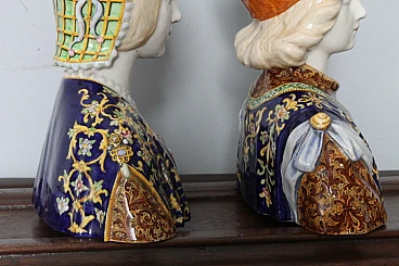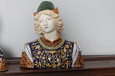 Coppia di busti in maiolica di Minghetti Bologna, inizio '900