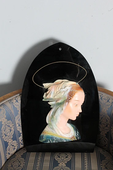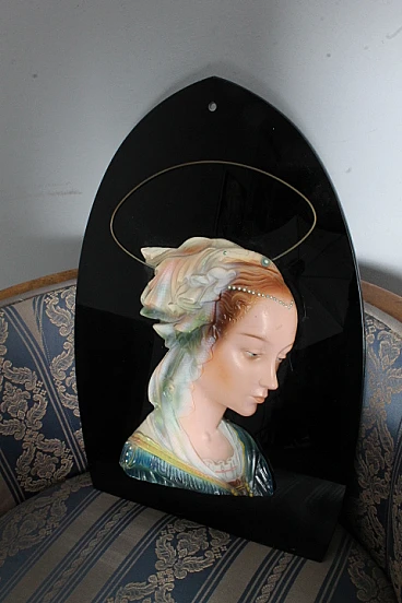 Madonna in terracotta su vetro nero di Manifattura Signa, anni '40