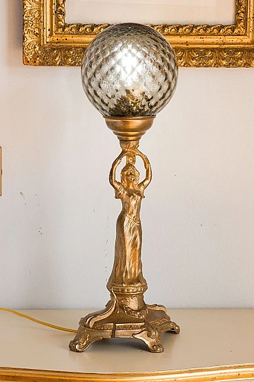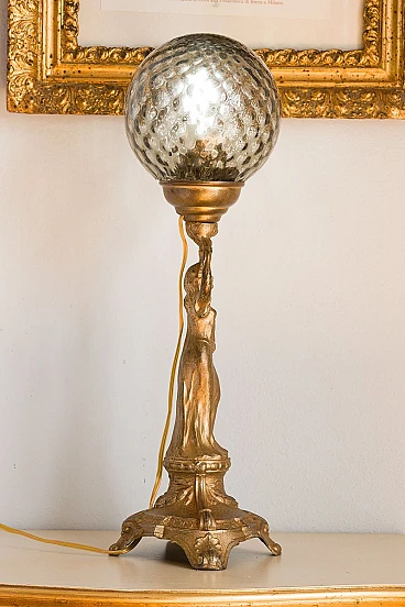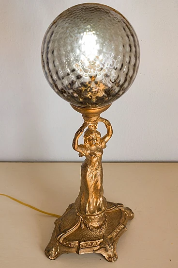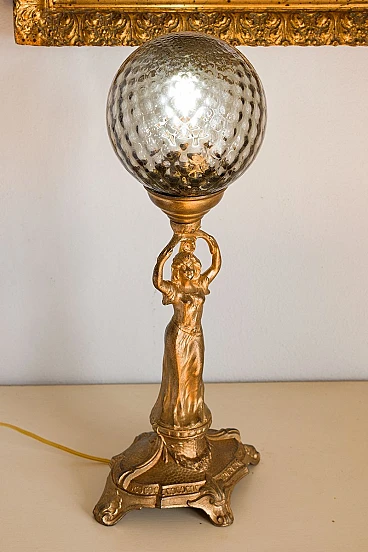 Lampada da tavolo Art Nouveau con sfera in cristallo, inizio '900