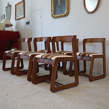 6 Sedie in legno e tessuto di Willy Rizzo per Mario Sabot, anni '70