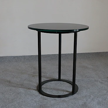Tavolino Uvi di Laura Griziotti per Arflex, anni '80. Si distingue per la sua forma elegante e il materiale di alta qualità. Presenta uno specchio nero spesso 12 mm che non solo conferisce un aspetto sofisticato ma riflette anche la luce ambientale, aggiungendo luminosità all'ambiente circostante. Il design di Griziotti si caratterizza per linee pulite e modernità; perfetto per adattarsi a diversi stili di arredamento. Ideale come tavolino da salotto o da appoggio, il modello Uvi di Arflex si adatta perfettamente a spazi sia domestici che professionali. La combinazione di materiali di alta qualità e design innovativo lo rende un pezzo d'arredamento versatile e durevole.