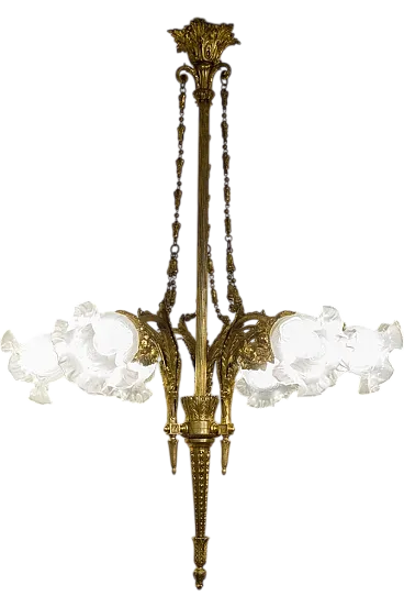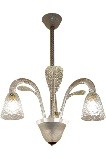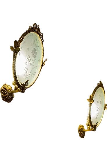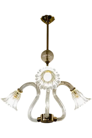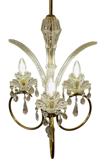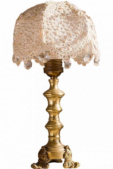 Lampada da tavolo in ottone e paralume in organza e perle, anni '40