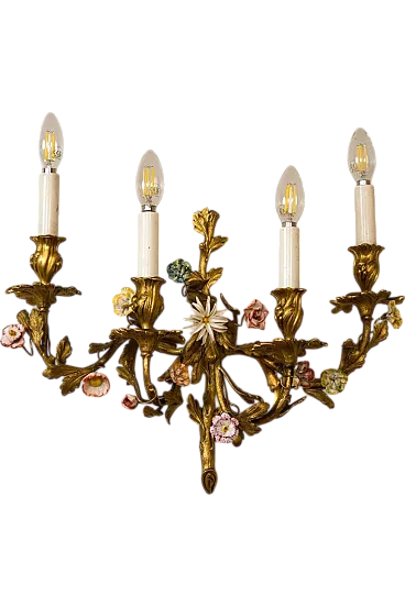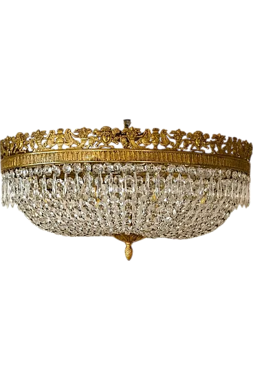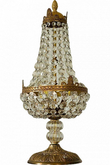 Lampada da tavolo Impero con 3 luci in vetro e bronzo, anni '50
