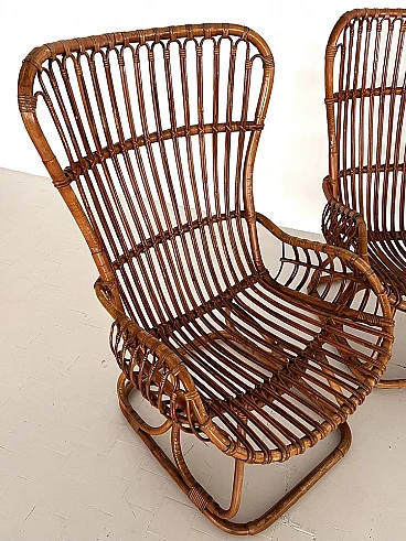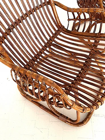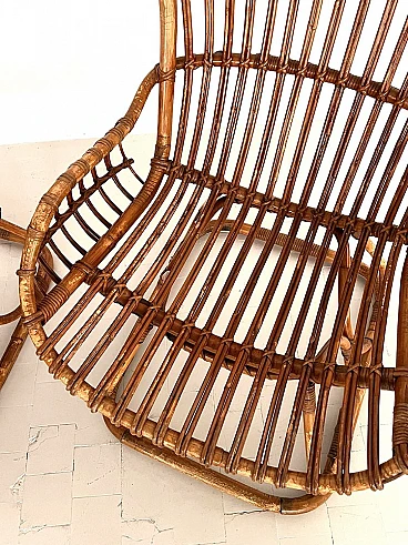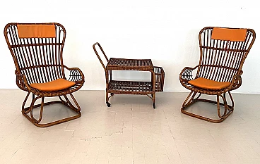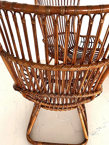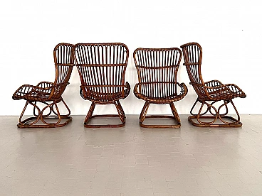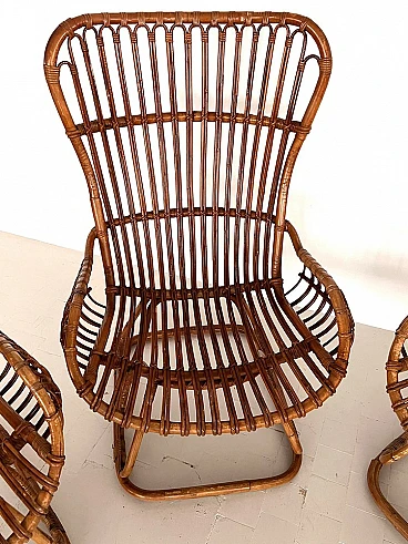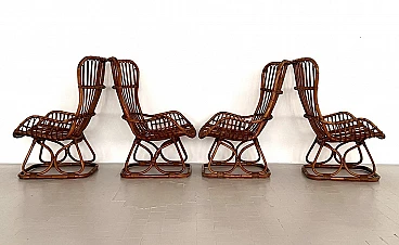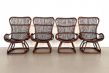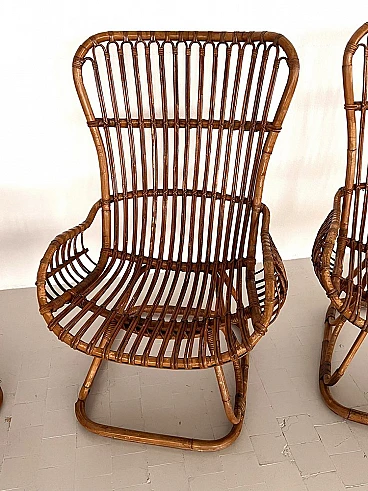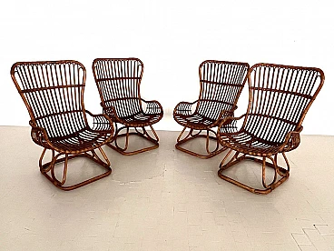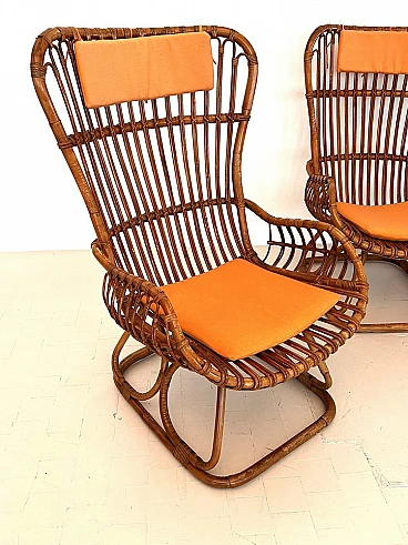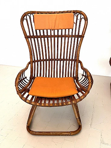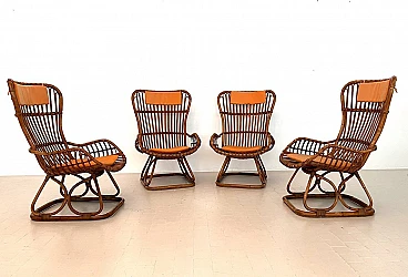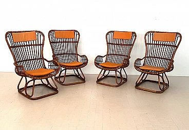 4 Poltrone in bambù con cuscini arancioni, anni '70