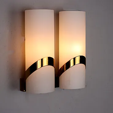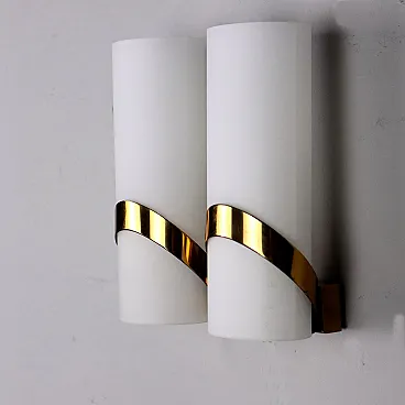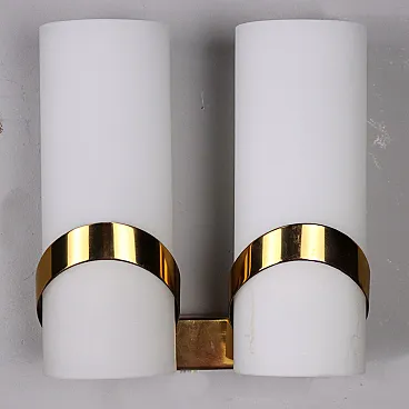 Applique a due luci in vetro opalino ed ottone, anni '60