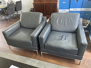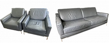 Salotto Editions composto da tre pezzi in pelle martellata grigia, produzione Natuzzi. Raffinato Set da salotto serie Editions composto da un divano a 2 comodi e generosi posti e due comode poltrone. Rivestimento in morbidissima pelle martellata grigio color antracite. Raffinata ed elegante pelle dalla elevata qualità tattile sensoriali. Tutto in ottime condizioni, con solo lievi pieghe del pellame, come effetto normale per i mobili in pelle. Segni minimi d'uso, normale utilizzo moderato casalingo, leggere e contenute piegature sulla pelle. Cromature belle e brillanti. Valore del set 7500 euro, richiesta economica 3250 euro. Larghezza 200 cm, profondità 90 cm, altezza 90 cm, altezza della seduta 40 cm.