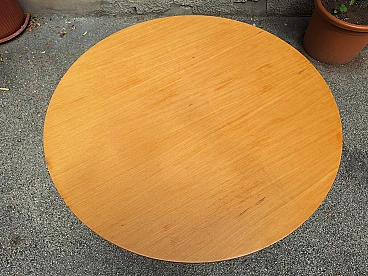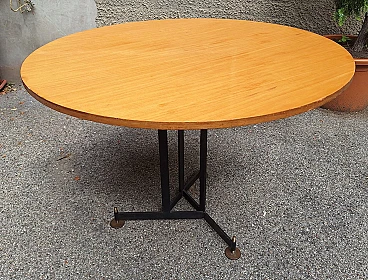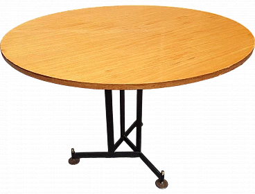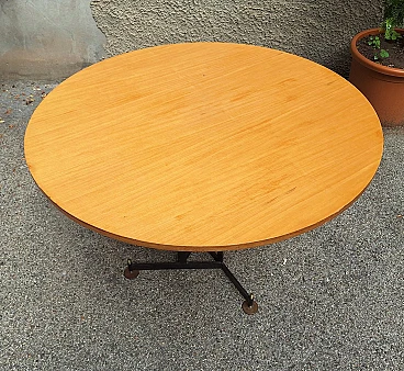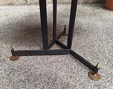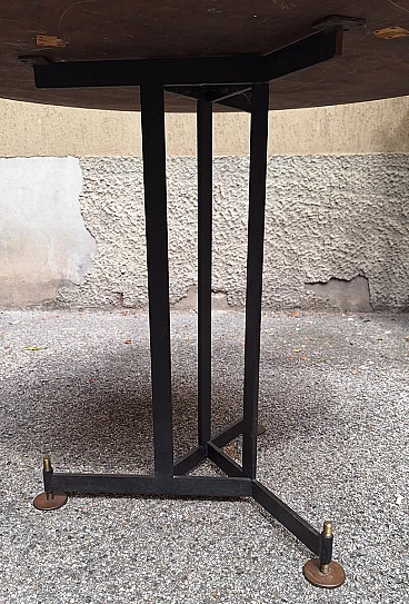 Tavolo in ferro ed ottone con ripiano rotondo in legno, anni '50