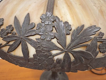 Lampada stile Tiffany in bronzo e pietra dura di Miller, anni '50