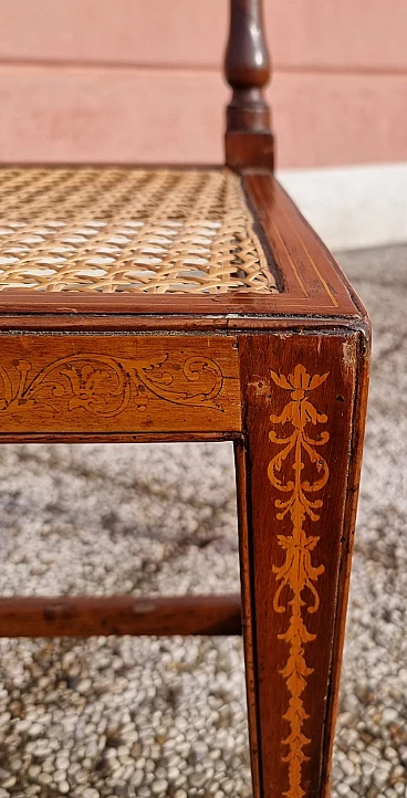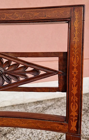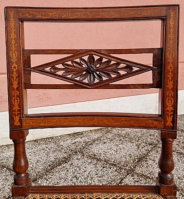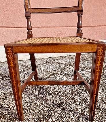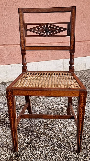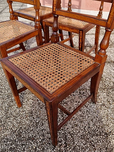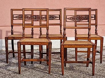 5 Sedie Luigi XVI in noce intarsiato con motivi floreali, '700
