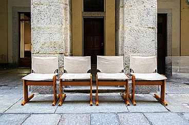 4 Sedie in faggio e pelle bianca di Poliform, anni '80