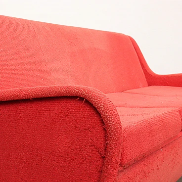 Divano letto imbottito e rivestito in tessuto rosso, anni '60