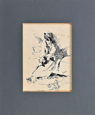 Figura di uomo è un disegno originale a inchiostro di china realizzato da Eugenio Scorzelli (1890-1958). Buone condizioni, incluso un passpartout in cartoncino grigio (33,5x27,5 cm). Firmato a mano dall'artista in basso a destra. Eugenio Scorzelli ( 1890-1958) si formò all'Accademia di Belle Arti di Napoli con Cammarano, Morelli e Palizzi, ma lavorò a lungo tra Londra e Parigi, molto influenzato dalla produzione di De Nittis. Realizzò vedute napoletane, parigine e londinesi, occupandosi anche di figura e scene di vita quotidiana. Era molto attento alla luce, all'atmosfera, con una pennellata sintetica e focalizzata sulle sfumature del grigio e del bianco. Colleziona un'opera d'arte molto bella del XX secolo.