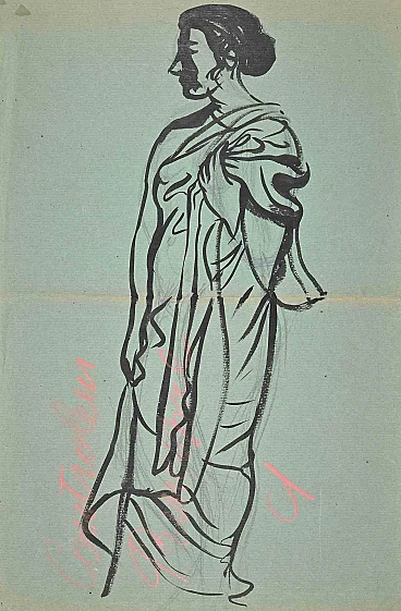 Donna è un disegno originale ad acquerello, realizzato nella metà del XX secolo da Jean Delpech (1916-1988). Buone condizioni. Jean-Raymond Delpech (1988-1916) è un pittore, incisore e illustratore francese, che è maggiormente influenzato dal paese della sua infanzia. ha studiato alla Scuola di Belle Arti di Parigi. Vinse il primo premio di Roma per l'incisione calcografica nel 1948, ottenendo poi molto successo in Italia. Ha prodotto anche francobolli, illustrazioni per libri e riviste, scenografie teatrali (per Dullin), medaglie, dipinti e persino vetrate. Dal 1944 al 2004, il suo lavoro è stato oggetto di numerose mostre, individuali o collettive.
