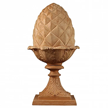 Terracotta toscana della seconda metà del XX secolo. Oggetto di bella misura e piacevole arredamento costituito da due elementi separabili (vedi foto). Pigna in terracotta timbrata sulla base (vedi foto) Palmieri Italy. Oggetto decorativo da esterno/interno di favolosa decorazione, senza rotture o vecchi segni di restauro. In buone condizioni. Lato base 38 cm.