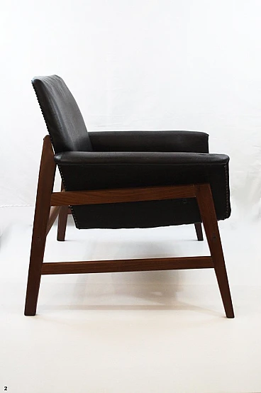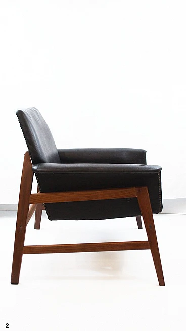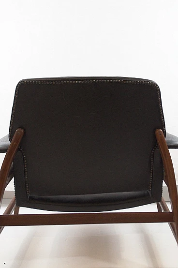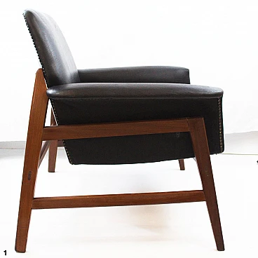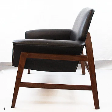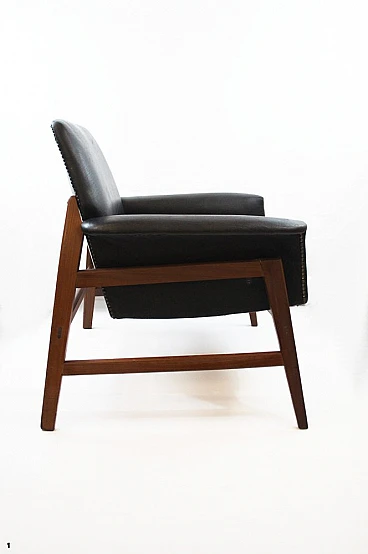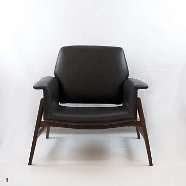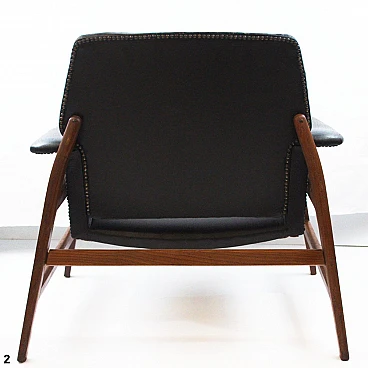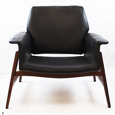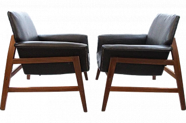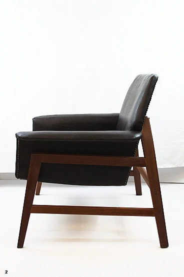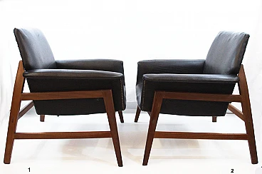 Coppia di Poltrone in legno e pelle in stile di G. Frattini, anni '60