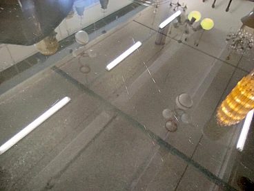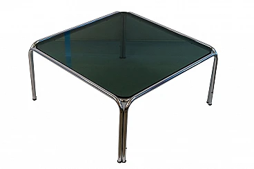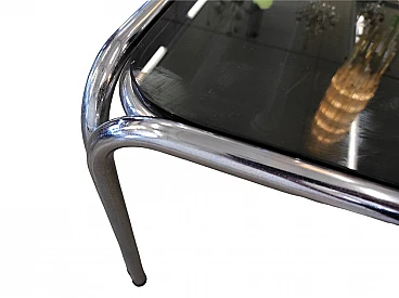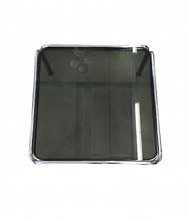 Tavolino in metallo tubulare e piano in vetro fumé, anni '60