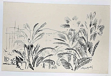 Paesaggio è un disegno originale a inchiostro di china realizzato da François Quelvée (1884-1967). Buone condizioni su carta ingiallita, incluso un passpartout in cartoncino bianco (37,5x55 cm). Firmato a mano dall'artista in basso a destra. François, Albert, Ernest Quelvée (nato il 13 ottobre 1884 a Évreux e morto il 12 dicembre 1967 a Saint-Germain-en-Laye) è un pittore, incisore e illustratore francese. Allievo di Maurice Denis, di cui frequentò il laboratorio di arte sacra, ricevette dal suo maestro, dopo aver ricoperto una funzione in opere pubbliche, il gusto per le grandi composizioni. È essenzialmente un pittore di genere, nudi, bouquet e paesaggi del Nord Africa. Colleziona bellissime opere d'arte del XX secolo!