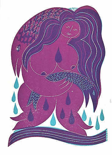 Creatures è una serigrafia originale realizzata da Axel Hartenstein a metà del XX secolo. In buone condizioni. L'opera d'arte è raffigurata attraverso tratti morbidi in una composizione ben bilanciata.